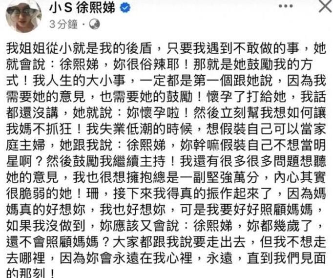 当然,作为亲人,小S悼念姐姐本无可厚非,只不过,大S虽然离世了,可与汪小菲的官司却一直没有结束,汪小菲与新婚妻子的婚礼在即,很难不让人做更多联想。